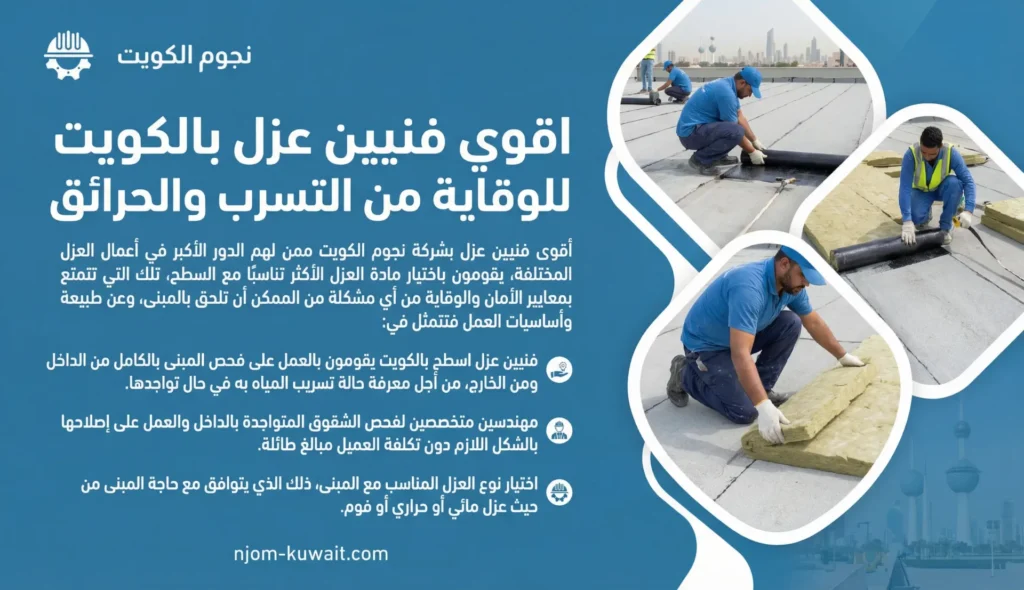 أقوى فنيين عزل بشركة نجوم الكويت ممن لهم الدور الأكبر في أعمال العزل المختلفة، يقومون باختيار مادة العزل الأكثر تناسبًا مع السطح، تلك التي تتمتع بمعايير الأمان والوقاية من أي مشكلة من الممكن أن تلحق بالمبنى، وعن طبيعة وأساسيات العمل فتتمثل في: